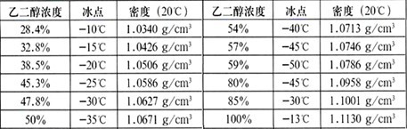 表1 防凍液中乙二醇濃度與冰點(diǎn)的關(guān)系
