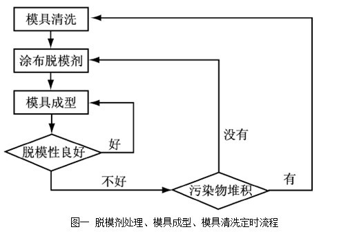 最新的半永久性脫模劑是水基乳液型的,其構成成分是兩種預聚物( 加上催化劑) , 其中的主預聚物是加熱反應成膜的主體預聚物,副預聚物在成膜中賦予聚合物潤滑作用,催化劑則起大大降低反應溫度的作用;半永久性脫模劑的優(yōu)點便是脫模效果好,生產效率提高,生產現(xiàn)場操作簡便,設備成本下降。今后的研究課題之一就是要以更耐熱化學性、內部潤滑性及相容性作為研發(fā)方向,后者主要考慮使脫模劑的潤滑成分與添加在膠料中的內脫模劑起協(xié)同作用為目標。